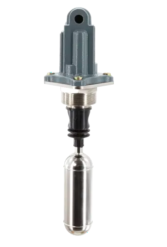 浮球液位開關。利用浮力原理。浮子的運動被傳遞到一個磁鐵上,該磁鐵切換一個信號微動開關。浮子和外殼由一個密封的不銹鋼屏障隔開。操作時不需要電源。