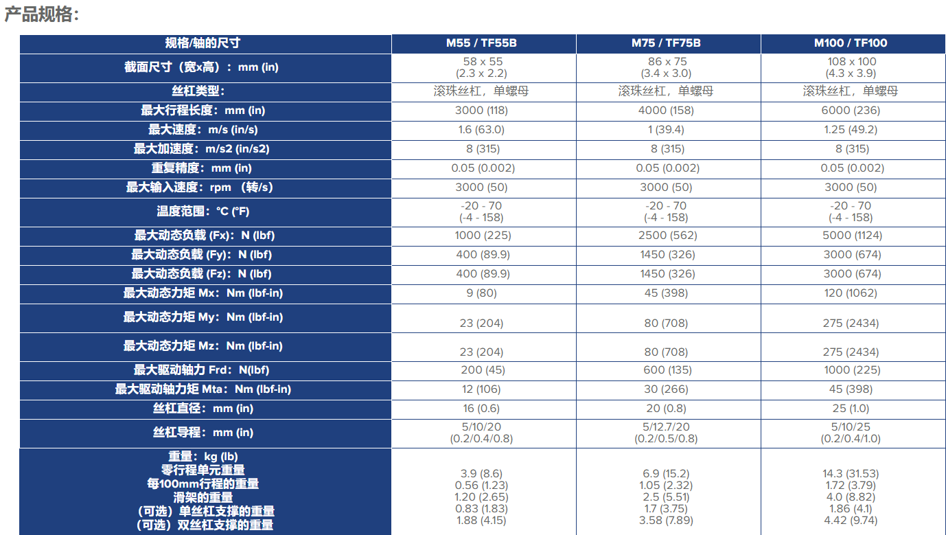 Thomson MG/TG (Movopart/Rapidtrak) 直線單元產品特性如下: